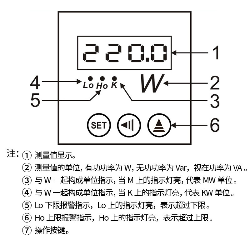 ④、與W一起構(gòu)成單位指示,當(dāng)K上的指示燈亮,代表KW單位。